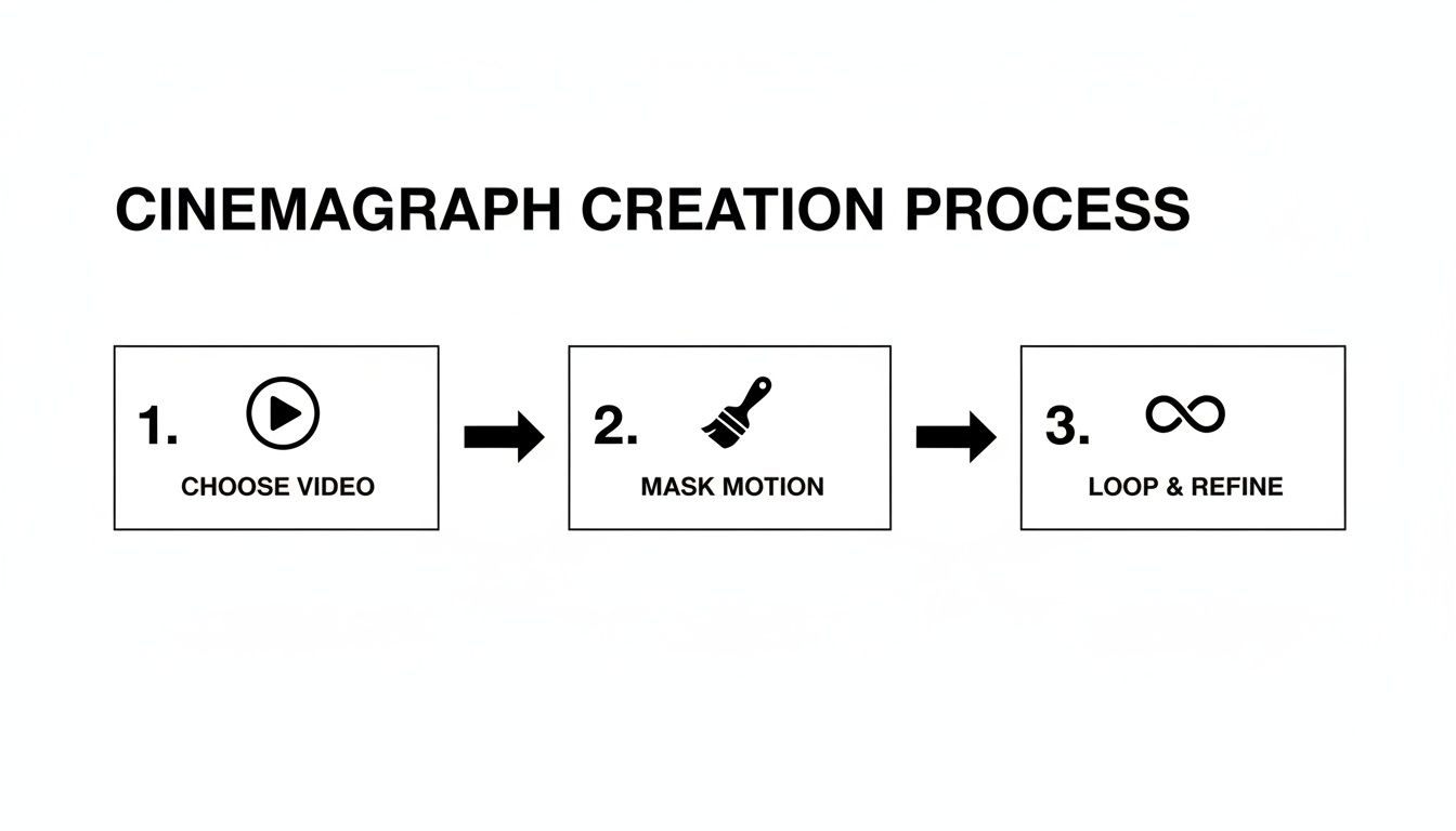 Cinemagraphs are where photography and video collide in the most captivating way. Instead of making the whole scene move, you isolate a single, mesmerizing loop of motion inside a photo that’s otherwise completely frozen. This little trick can transform a static image into a piece of living art, pulling the viewer's eye right where you want it.