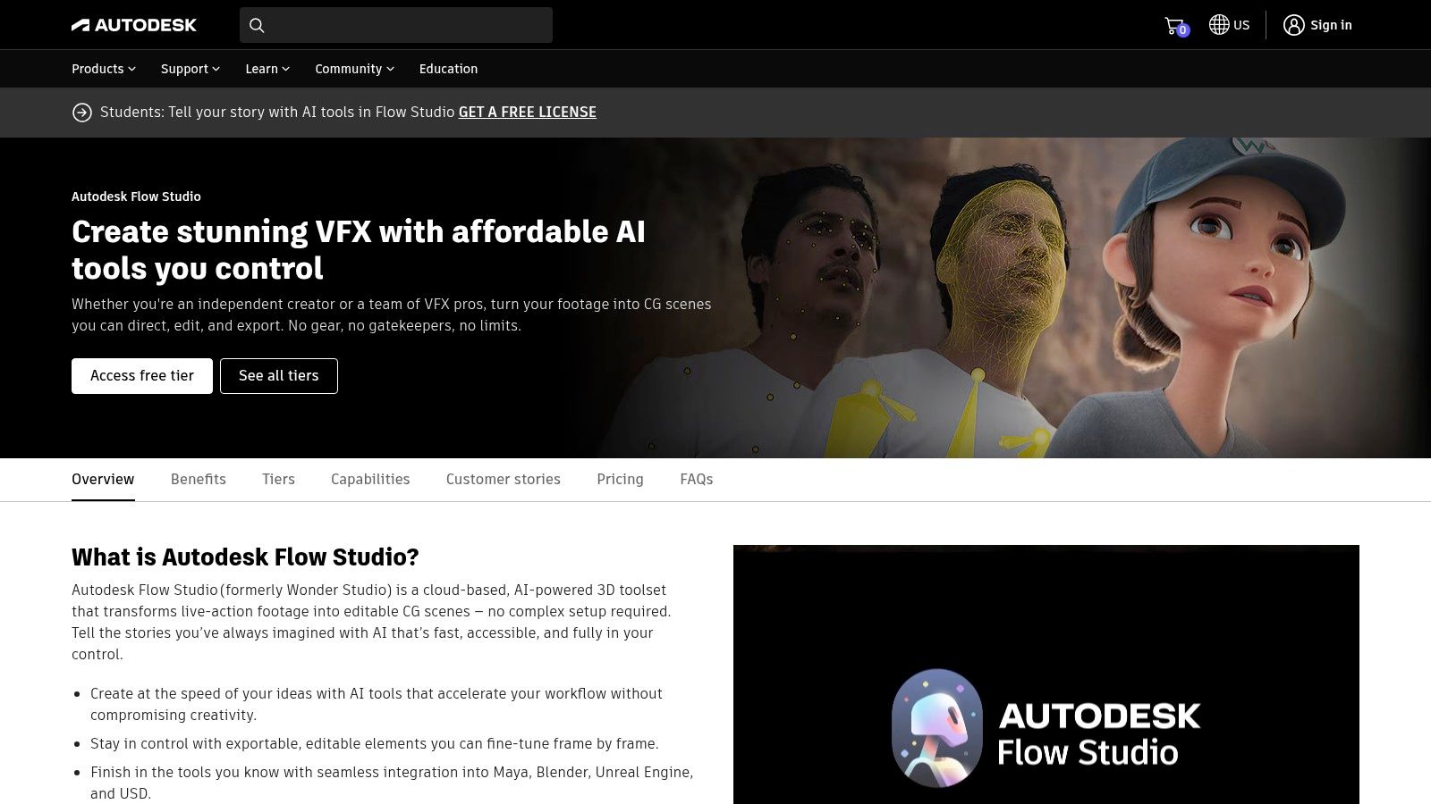 7. Autodesk Flow Studio (formerly Wonder Studio / Wonder Dynamics)