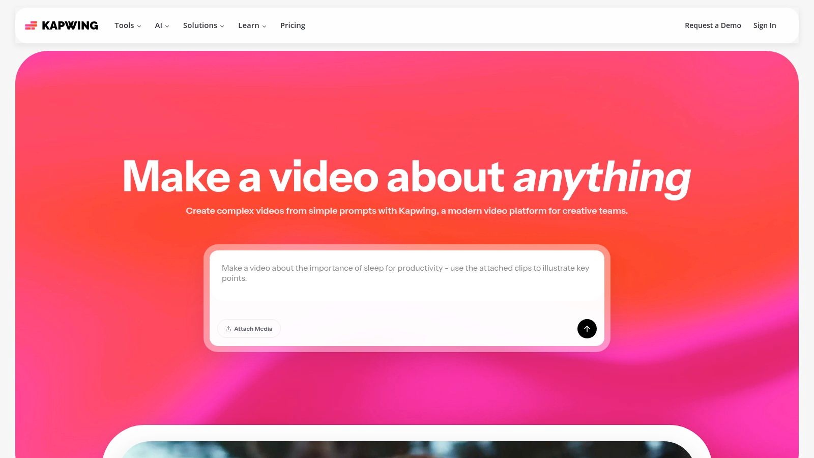 Kapwing’s AI tools are built to accelerate editing rather than replace it entirely. This makes it ideal for teams who need to repurpose content quickly and maintain brand consistency across different platforms.