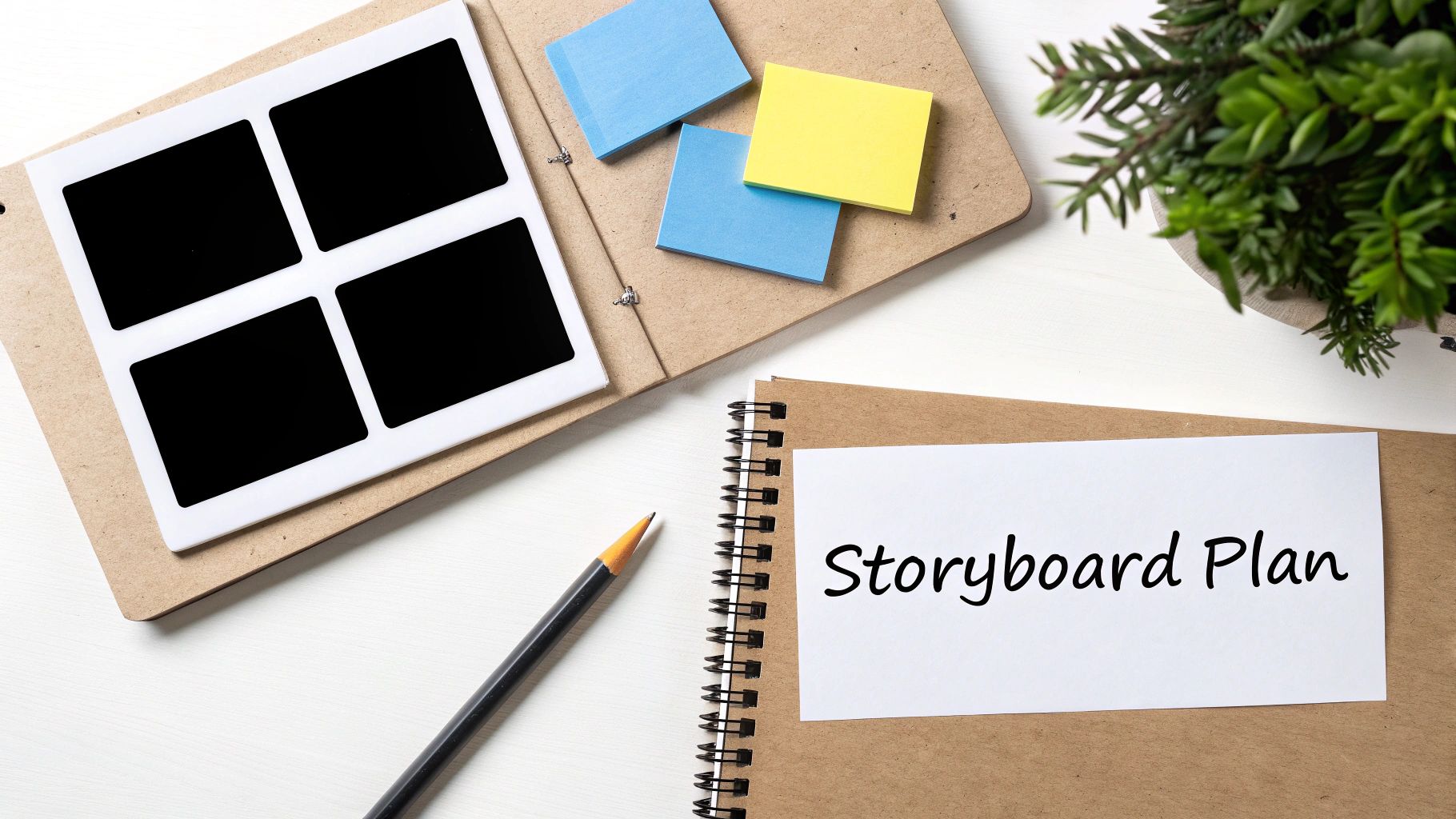 A good storyboard is your insurance policy against a chaotic and inefficient shoot. It forces you to think through your visuals before you record, saving you countless hours of guesswork and reshoots later.
