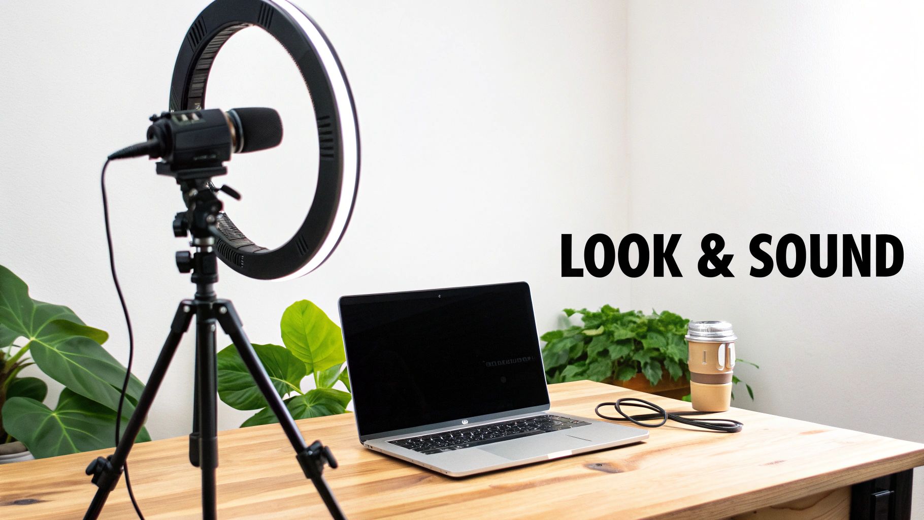 If natural light isn't a reliable option, an inexpensive ring light is a total game-changer. Position it directly behind your camera, just a bit above eye level, to create a flattering and professional look without any harsh shadows. This one simple addition can instantly elevate your video quality.