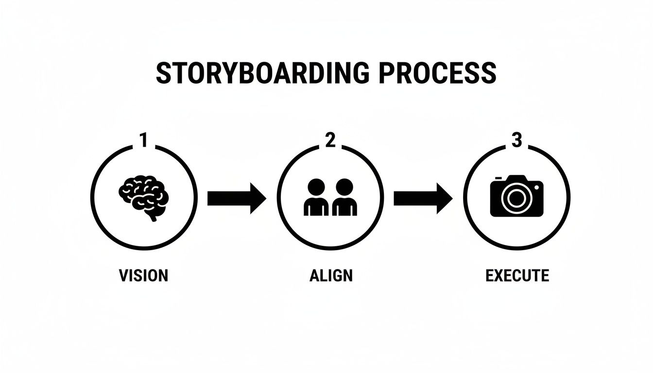 A storyboard, even a rough one, grounds that abstract idea in a concrete image. It becomes the single source of truth that aligns everyone, from the client giving notes to the editor piecing together the final cut. This shared understanding is what prevents costly miscommunication and ultimately leads to a video that feels cohesive and makes an impact.